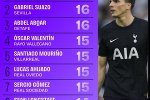 2、苏亚佐(塞维利亚):16次