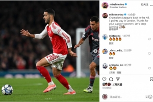 阿森纳中场梅里诺社媒晒出比赛照片,并写道:“欧冠重回北五区,将3分留在伦敦。”