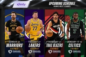 老鹰今天大胜掘金,转播方给出球队接下来5场赛程,对手分别是勇士、湖人、开拓者、凯尔特人和雄鹿。